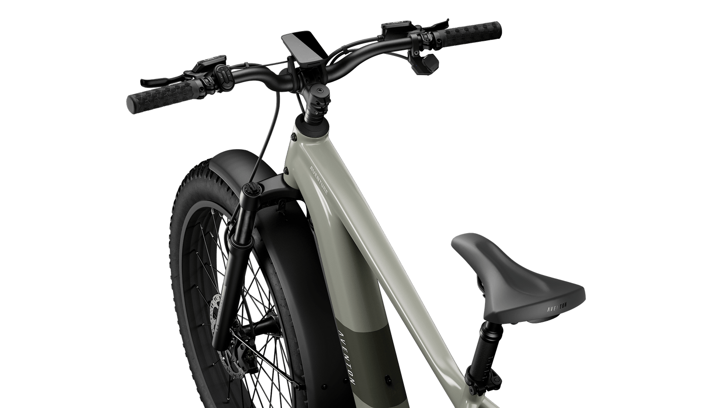 Aventure M is the perfect blend of rugged capability, performance, and technology to help you explore further than ever before. With meticulously designed frame geometry, a 80mm suspension fork, and 4.0" tires, there's nowhere the Aventure M can't take you. The Aventon A100 mid drive motor provides enough torque and power to conquer any terrain, giving you a responsive ride feel that can be easily customized with Ride Tune capabilities. With Aventon's electronic autoshift functionality ensuring you're always in the right gear at the right time, you can focus solely on the making it to the next mountain peak. ACU technology brings a host of connectivity and added security features including GPS tracking and an integrated lock, while the updated display brings you important metrics like torque, cadence, and power to help you maximize every ride. No matter where you want to go, Aventure M will get you there.